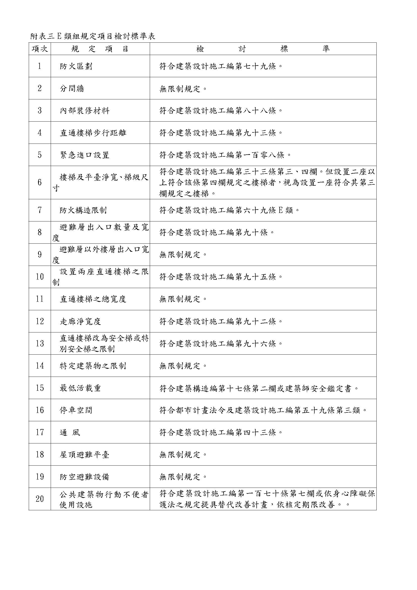 ■建築物之使用類別使用項目表: